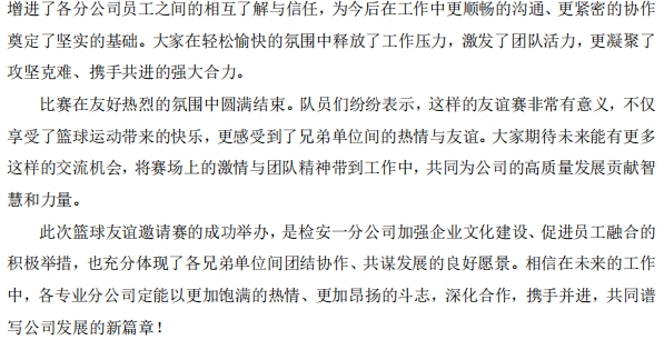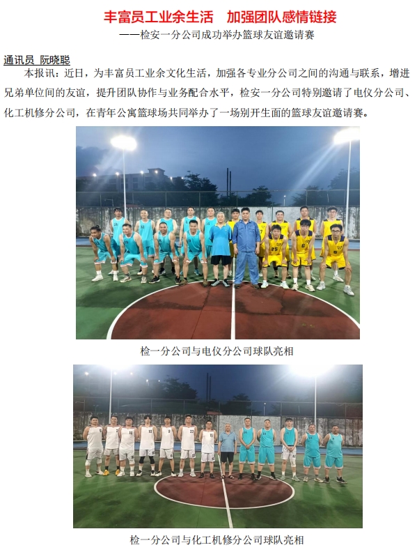 檢安一分公司成功舉辦籃球友誼邀請賽