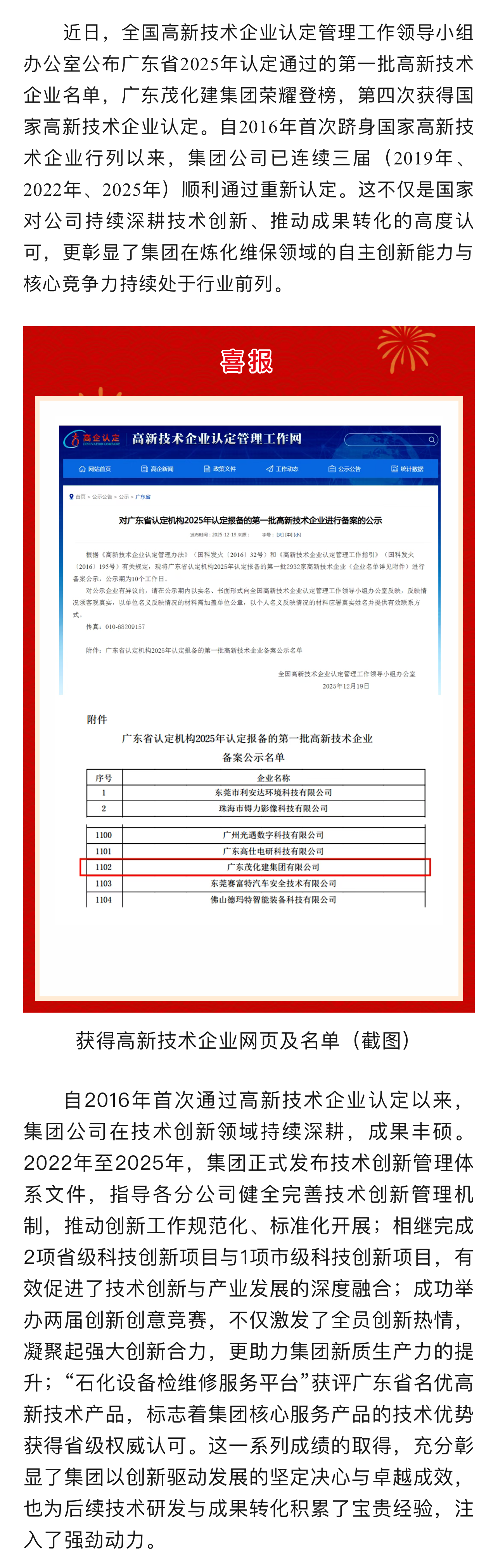 喜報(bào) | 廣東茂化建集團(tuán)再通過(guò)高新技術(shù)企業(yè)認(rèn)定